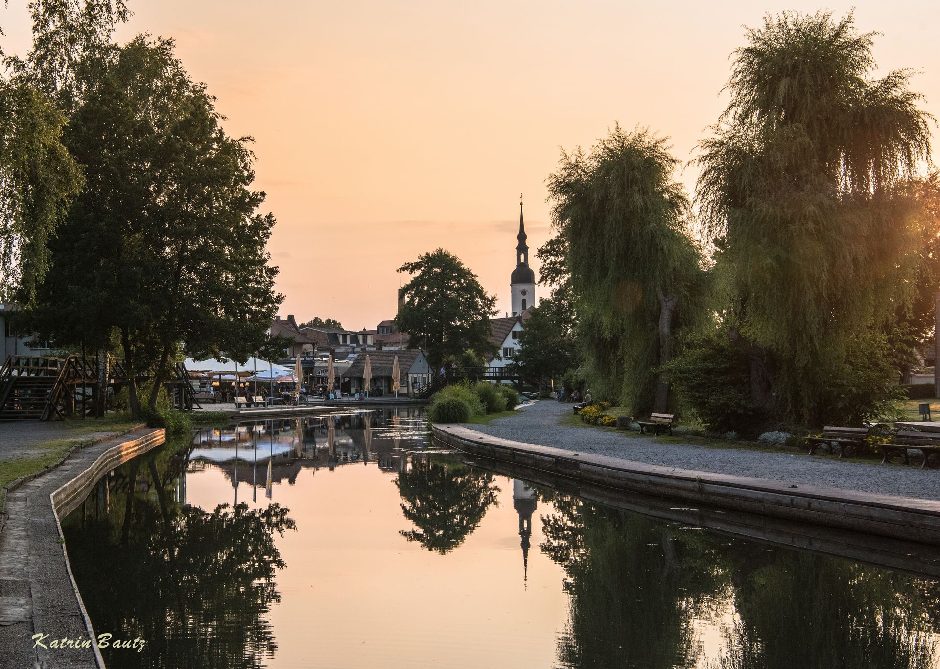 Ein lauer Sommerabend, der Fährmann steuert seine Gäste im Spreewaldkahn gekonnt in den Hafen, leise summen die Mücken …. es ist Zeit für „Chillen am Großen Hafen in Lübbenau“.